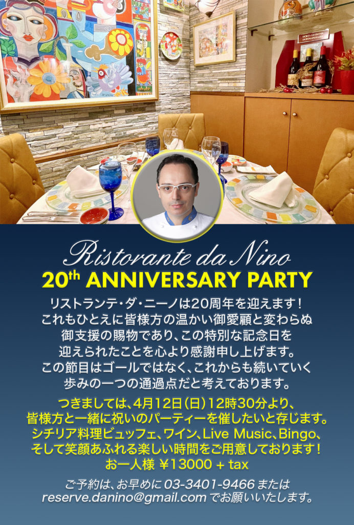 リストランテ・ダ・ニーノは20周年を迎えます!